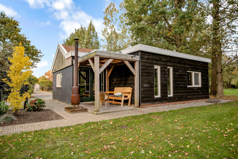 Aan de zijkant is ruimte om te parkeren op eigen terrein, onder een overkapping, zodat je auto altijd droog staat.